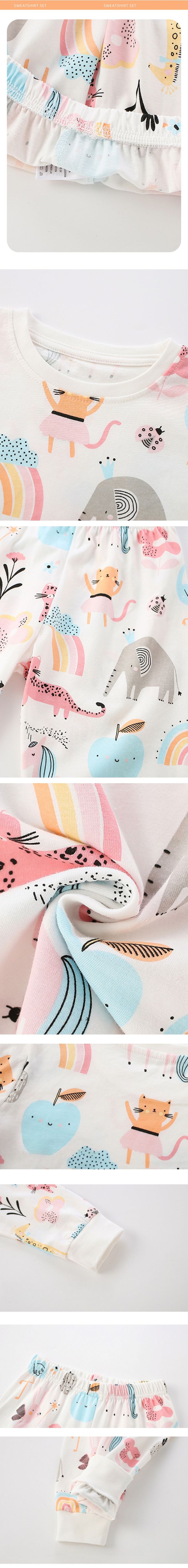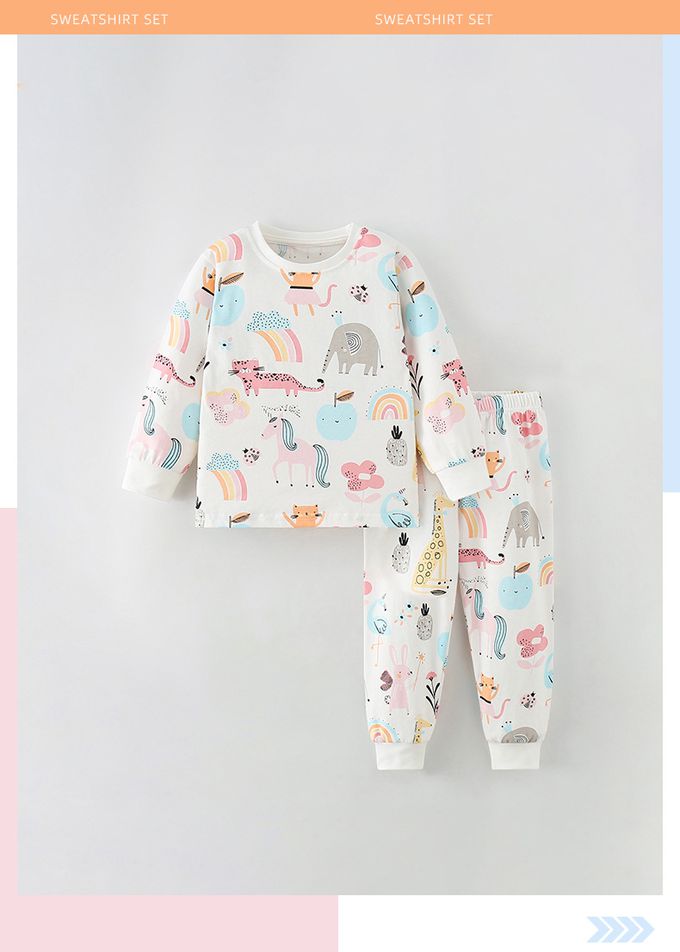 棉質圓領長袖套裝/家居服/空調服-童趣動物-米白
