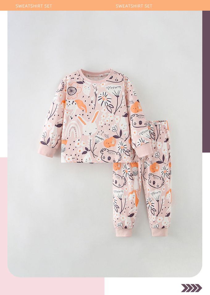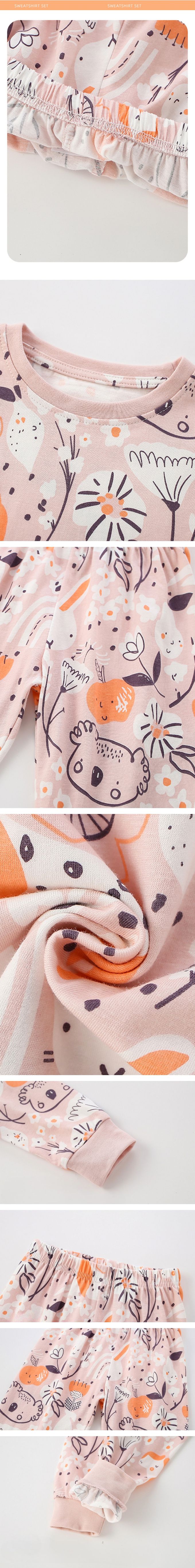棉質圓領長袖套裝/家居服/空調服-可愛動物-粉色