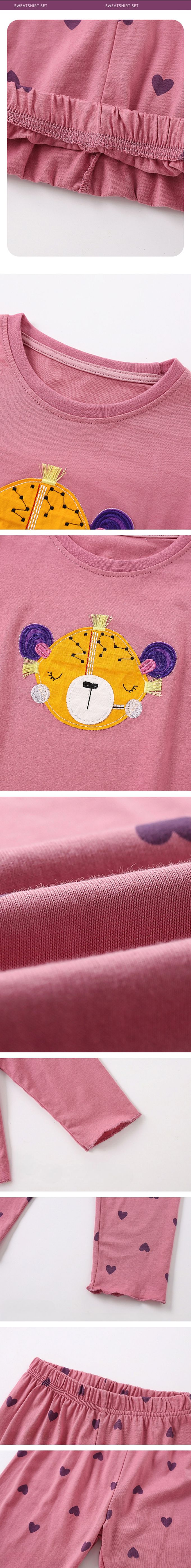 棉質圓領長袖套裝/家居服/空調服-黃色臉臉動物-粉紫