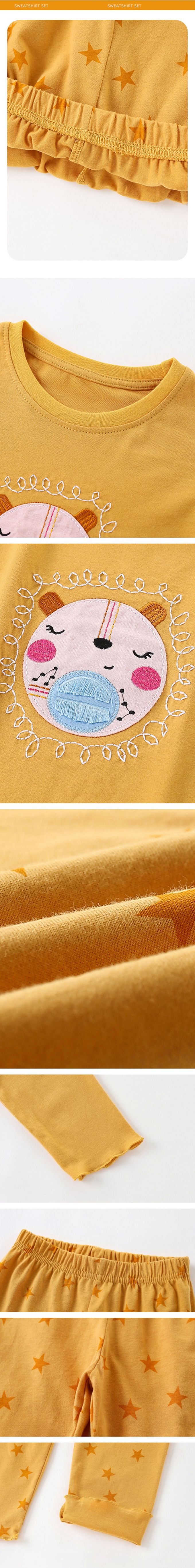 棉質圓領長袖套裝/家居服/空調服-萌趣動物-芥黃