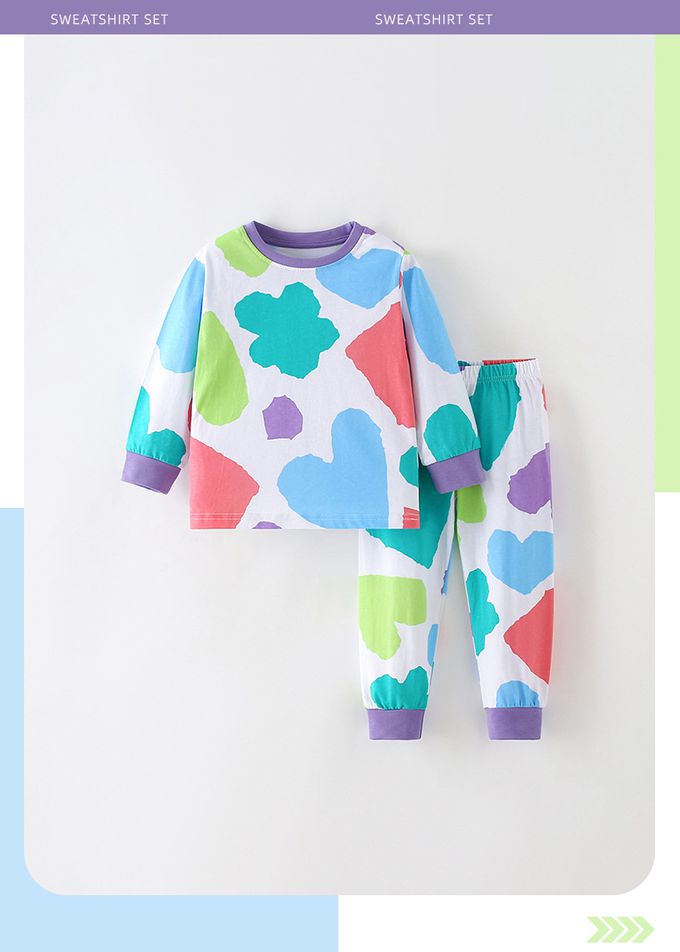 棉質圓領長袖套裝/家居服/空調服-清新色塊-米白