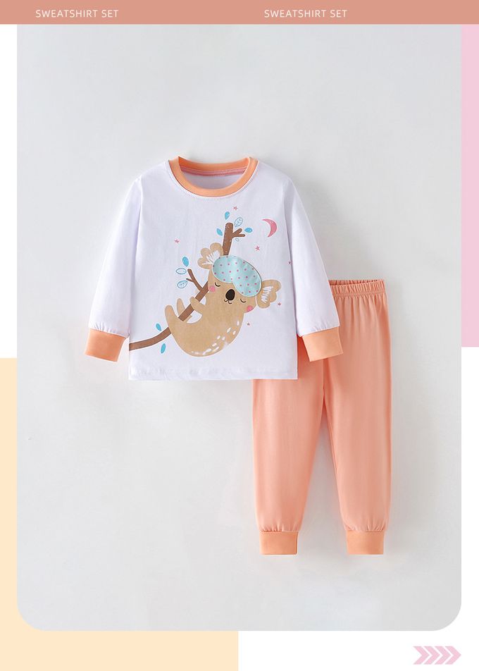 棉質圓領長袖套裝/家居服/空調服-睡覺無尾熊-米白