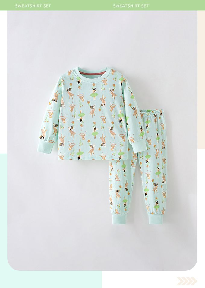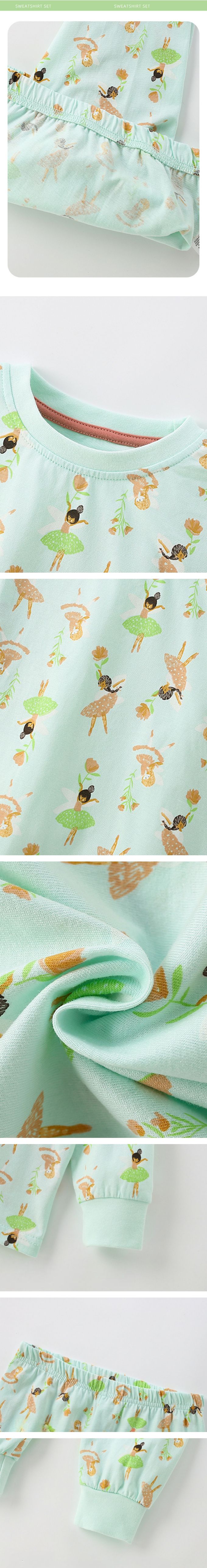 棉質圓領長袖套裝/家居服/空調服-花仙子-淺綠