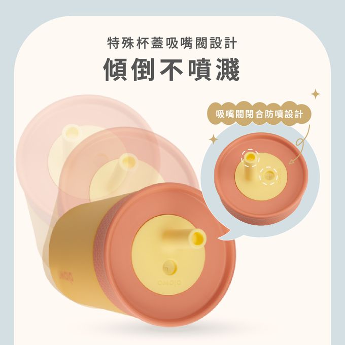 特殊杯蓋吸嘴閥設計,傾倒不噴濺,不喝水時,吸嘴閥閉合防噴設計