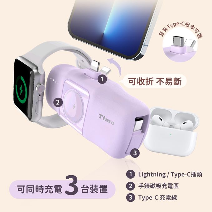 • 品名:Timo 蘋果派 三合一口袋行動電源 (可以充Apple Watch)