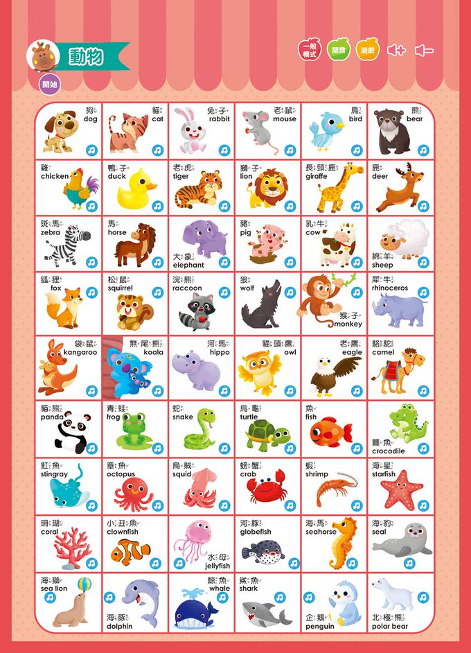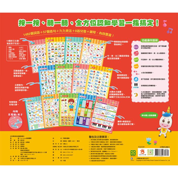 BABY認知點讀掛圖本(共13大主題,含1482個詞語+57個造句+九九乘法+8首兒歌+鋼琴)
