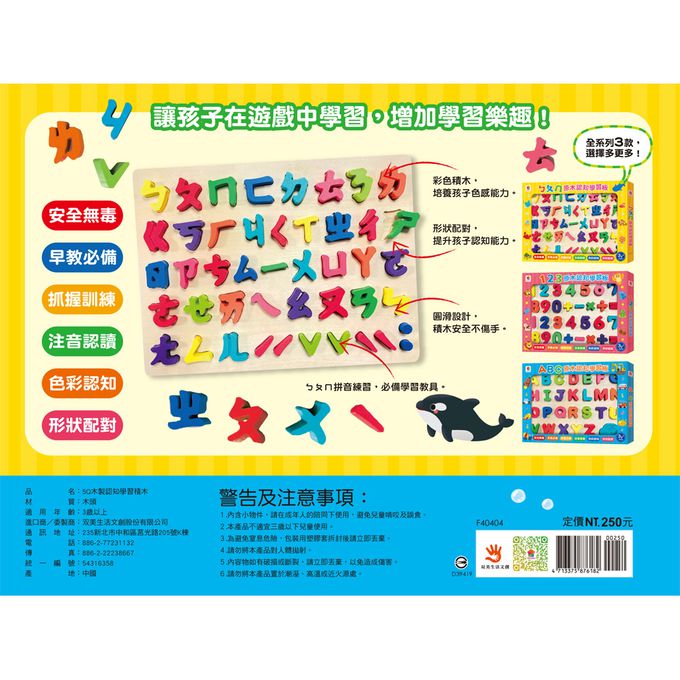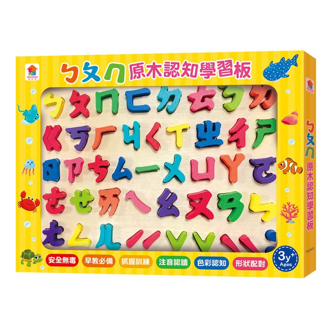 ㄅㄆㄇ 原木認知學習板(內含彩色注音木製積木45個+木製遊戲板)