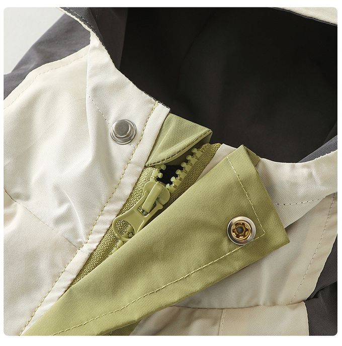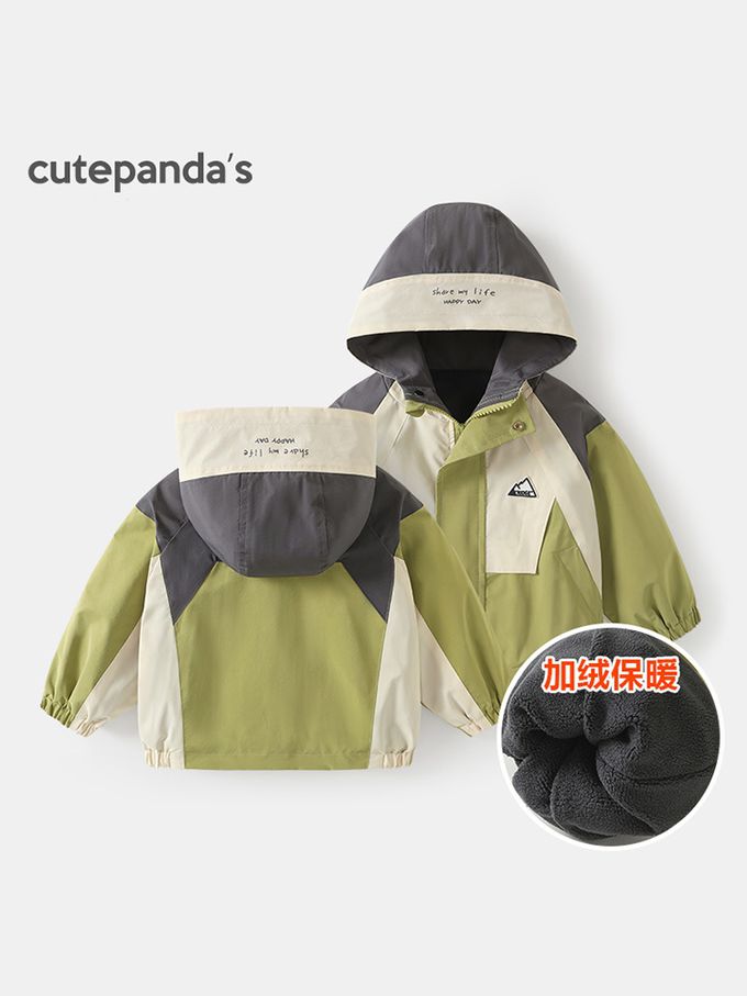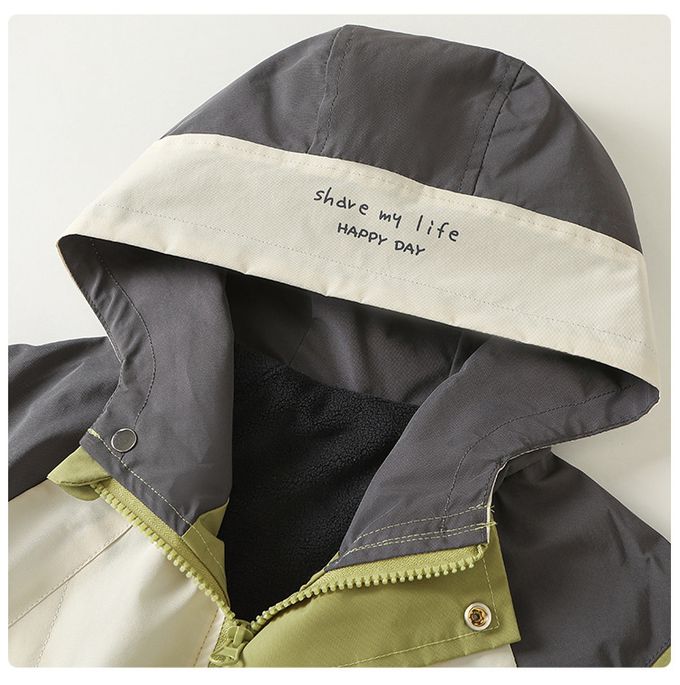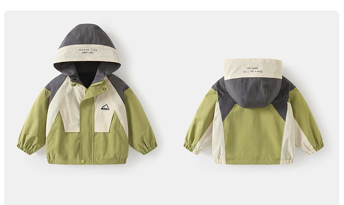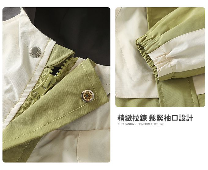 防風防水連帽衝鋒外套(加絨)-山系男孩-綠拚灰色