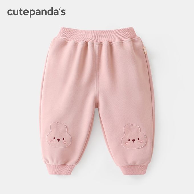 彈性腰鬆緊縮口長褲-兔子貼布繡-粉色