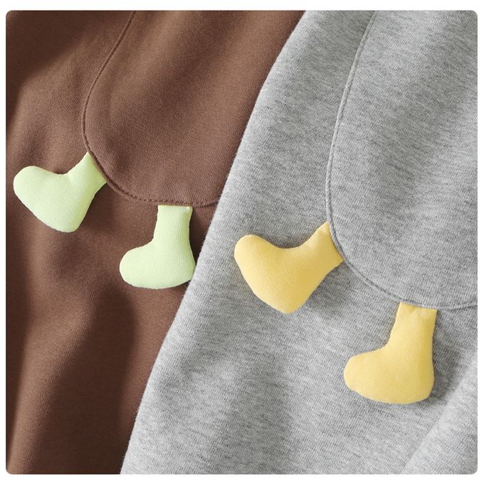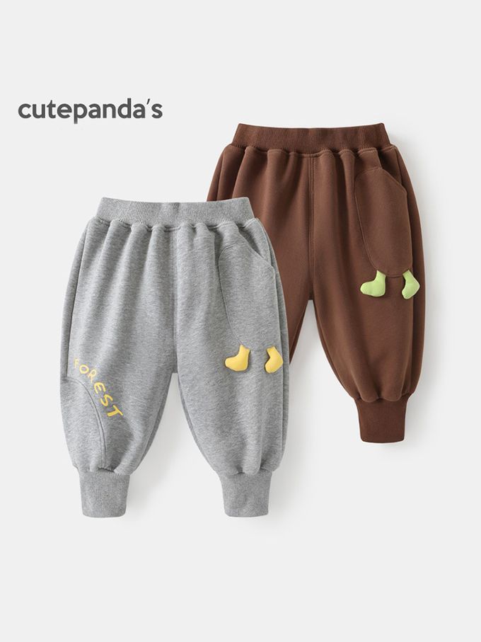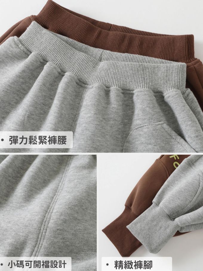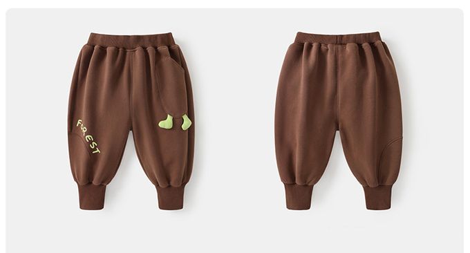 彈性腰鬆緊縮口長褲-立體腳丫-咖色