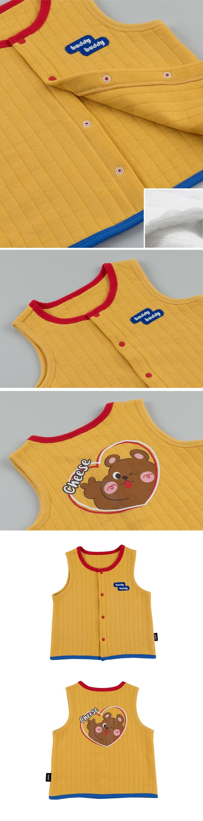韓國 Cordi-i - 3層鋪棉保暖背心-Cheese老鼠-芥黃