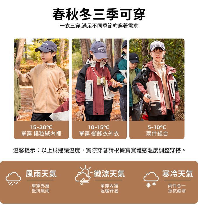 • 品名:防風防水x保暖搖粒絨兩件式衝鋒外套