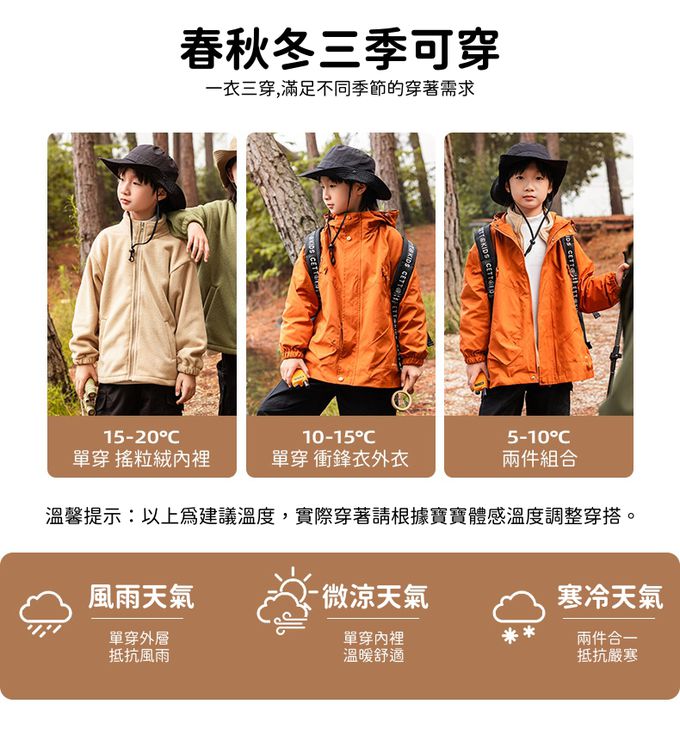 品名:防風防水x保暖搖粒絨兩件式衝鋒外套