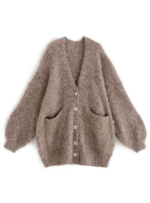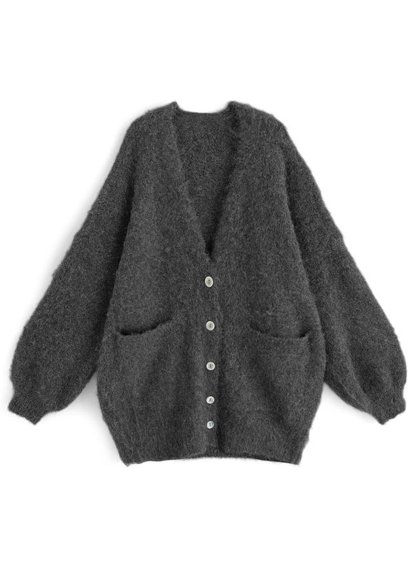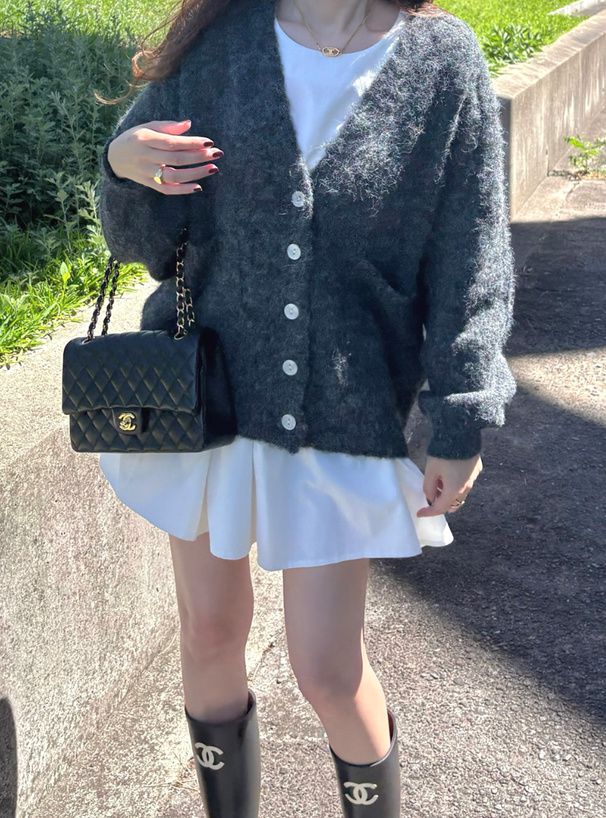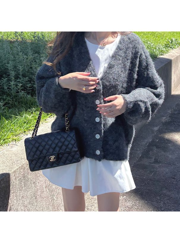 • 品名:羊毛混紡蓬鬆長絨毛針織開襟外套
