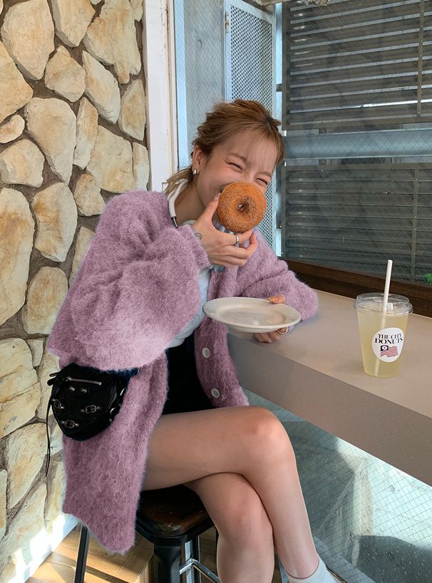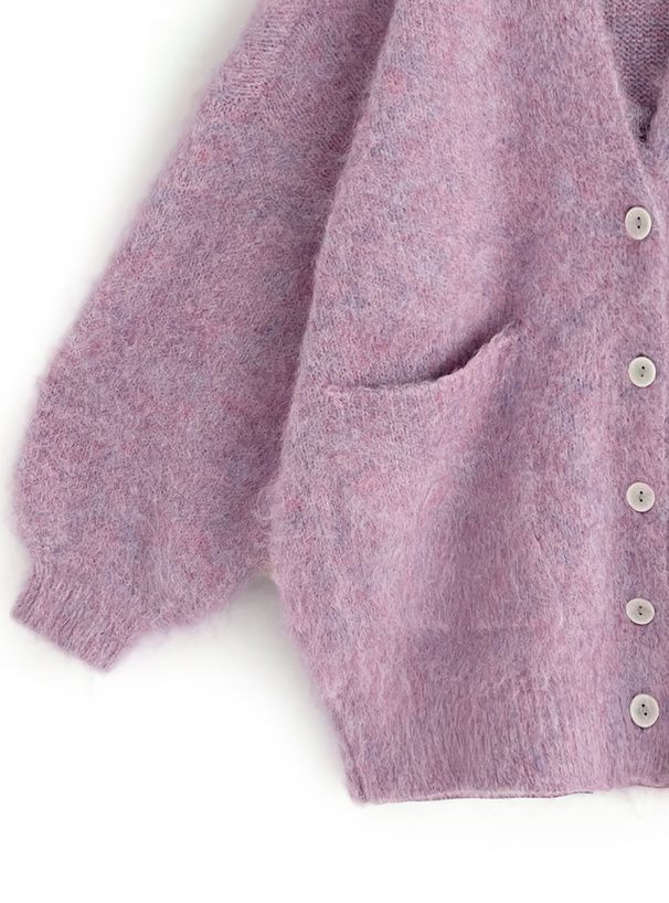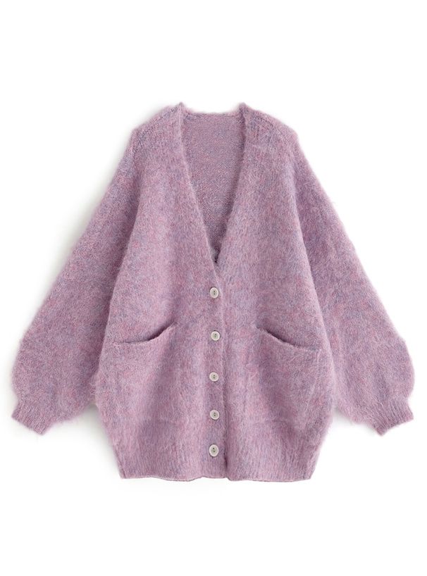日本 GRL - 羊毛混紡蓬鬆長絨毛針織開襟外套-粉紫 (F)