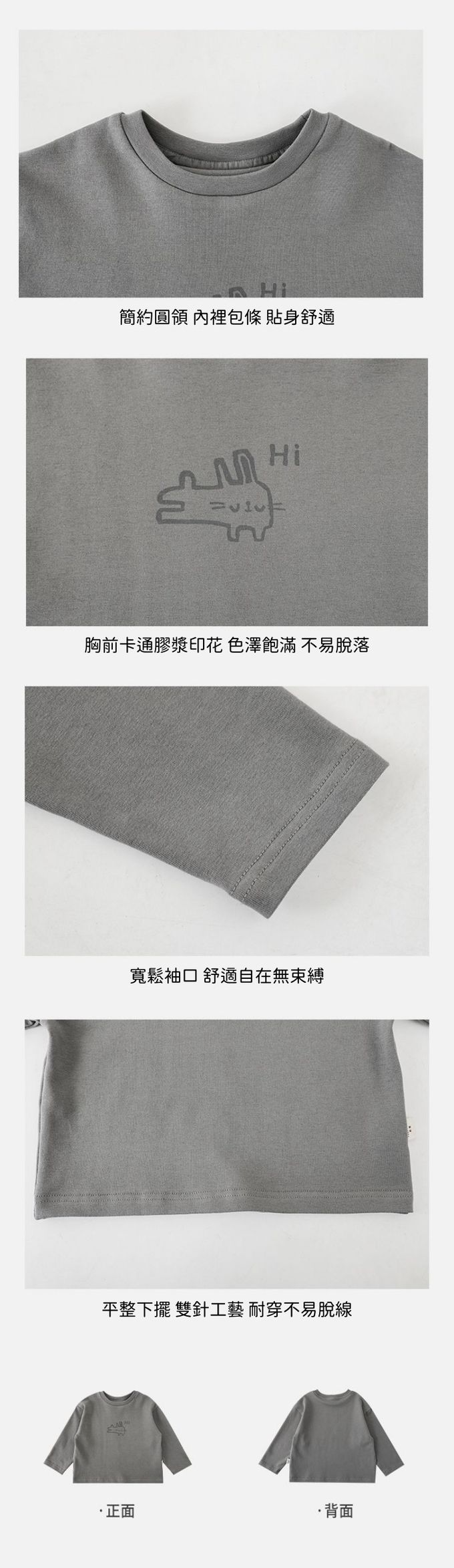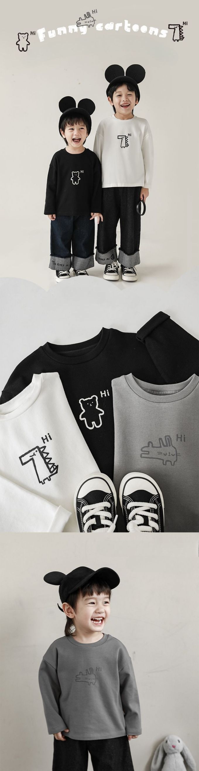 TONGMO - 休閒圓領長袖上衣-童畫熊熊-黑色