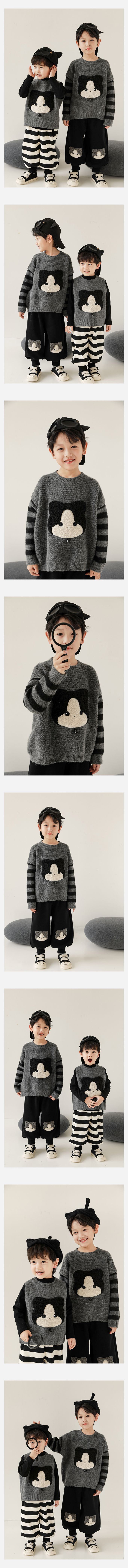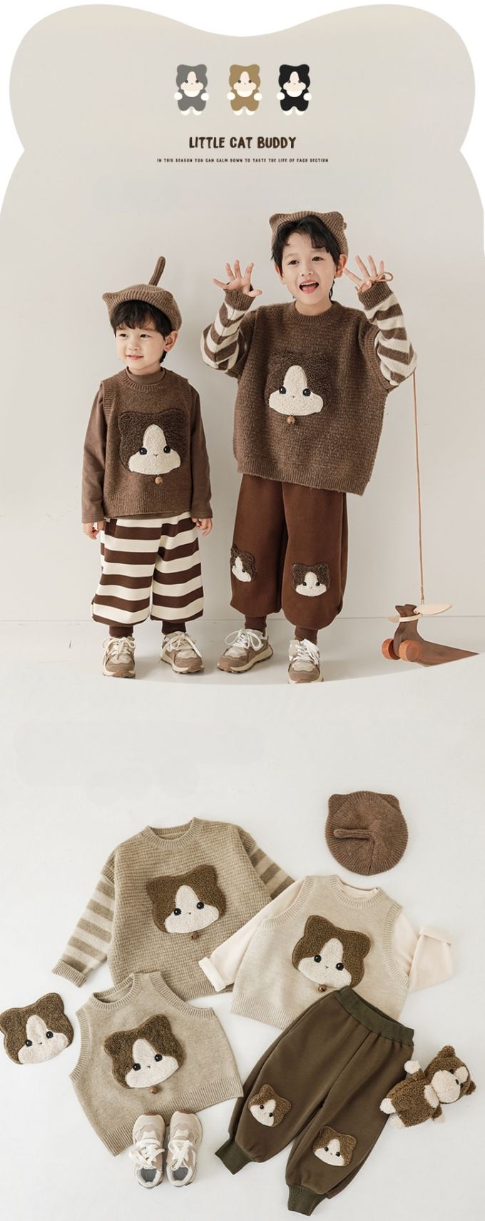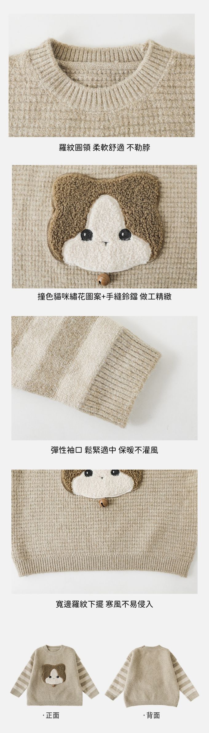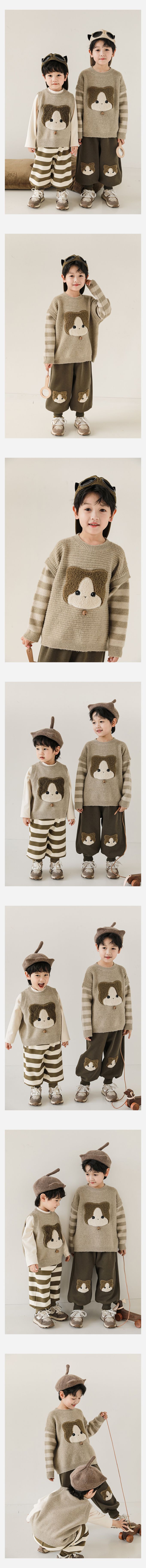 TONGMO - 假兩件長袖針織上衣/毛衣-貼布繡小貓-黑色