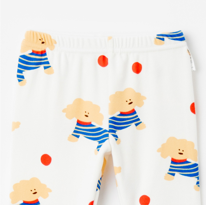 韓國 OZKIZ - 超細絨毛混織彈性長袖家居服-滿版狗狗-象牙白
