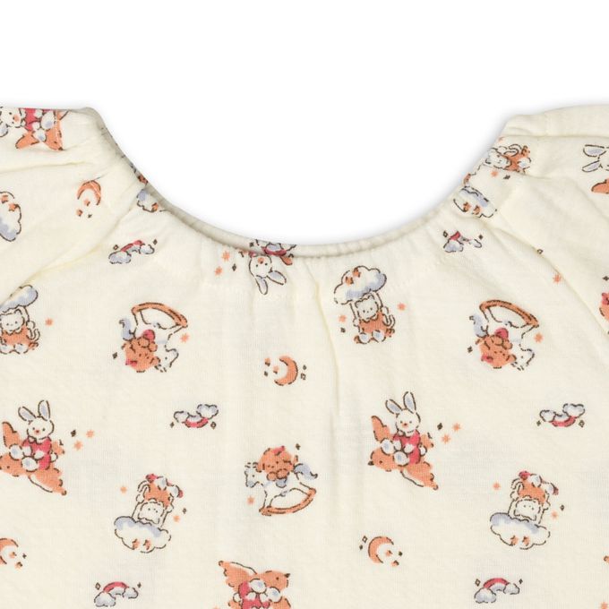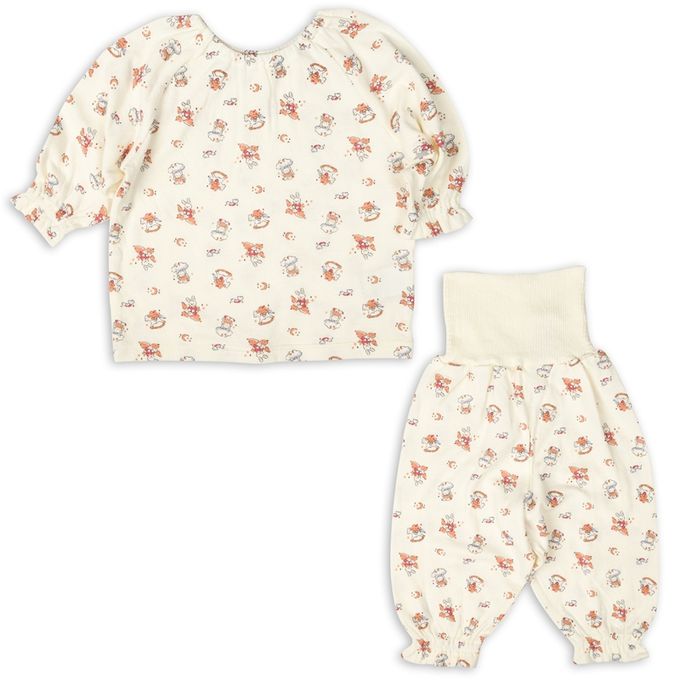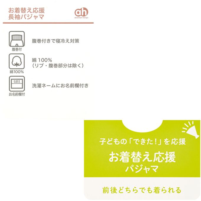 akachan honpo - 長袖套頭式家居服穿衣練習-動物-白色