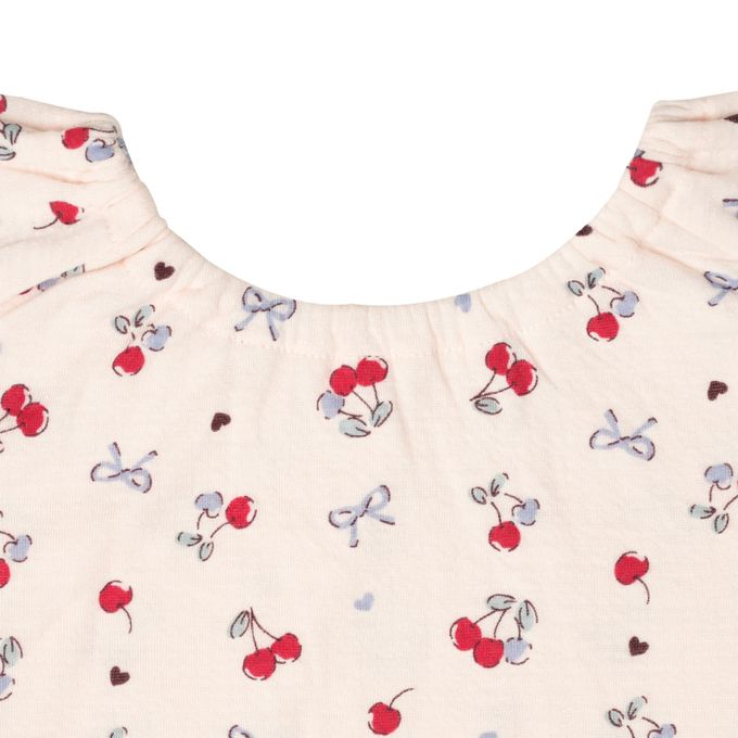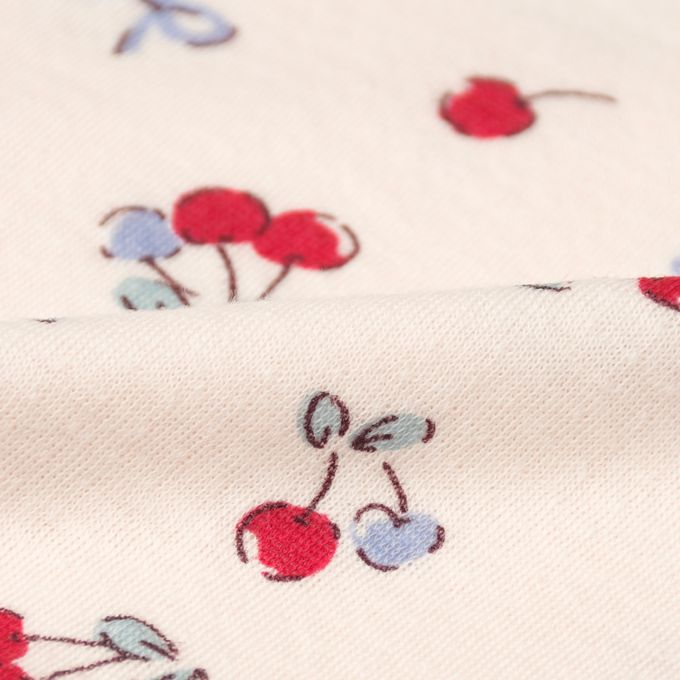 • 以粉紅色為底,搭配櫻桃滿版印花