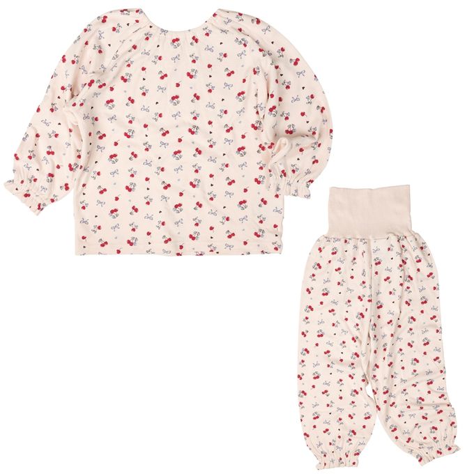 akachan honpo - 長袖套頭式家居服穿衣練習-櫻桃-粉紅色