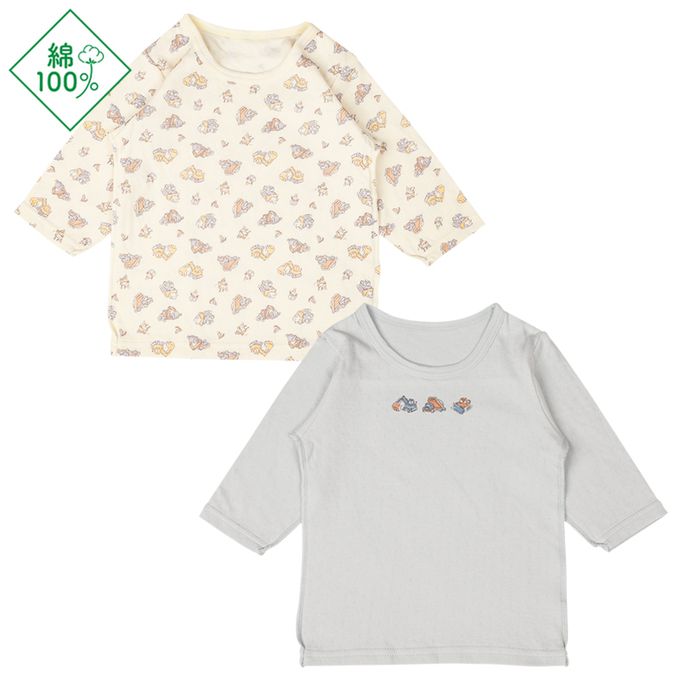 akachan honpo - 長袖圓領上衣2件組-蓬鬆棉 企鵝-象牙白色