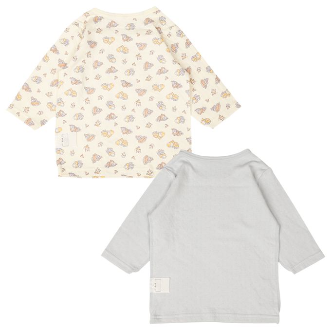 akachan honpo - 長袖圓領上衣2件組-蓬鬆棉質-黃色