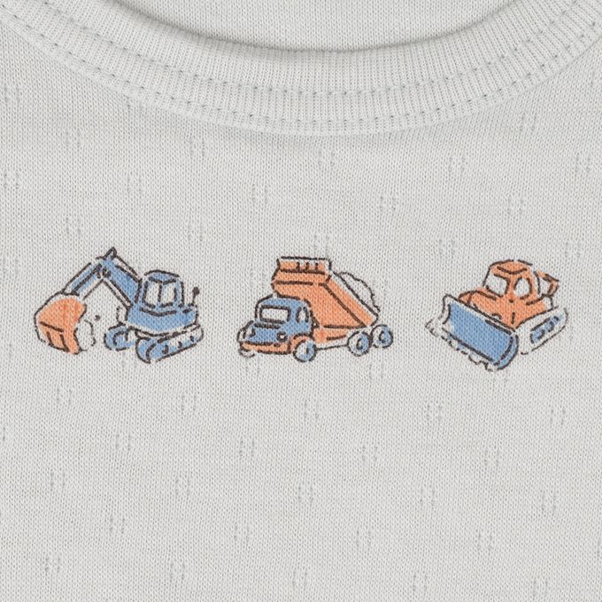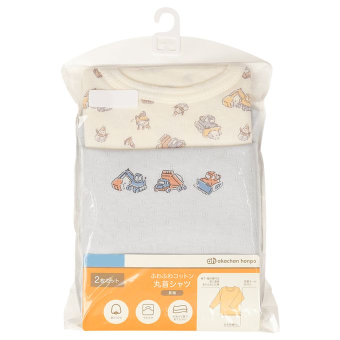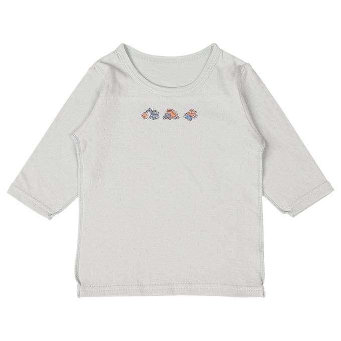 akachan honpo - 長袖圓領上衣2件組-蓬鬆棉 工程車-淺藍色