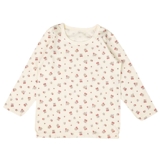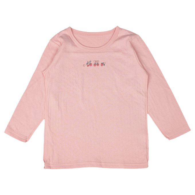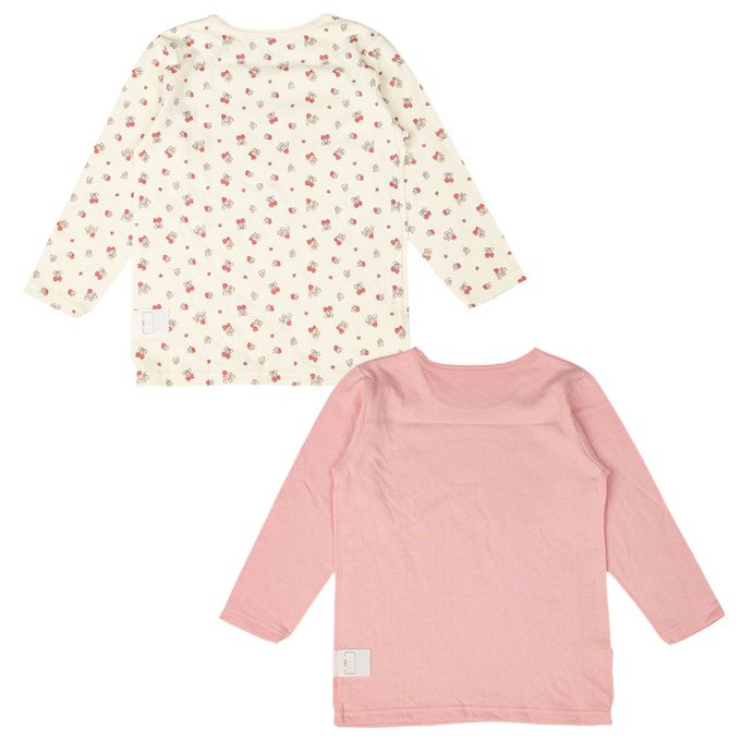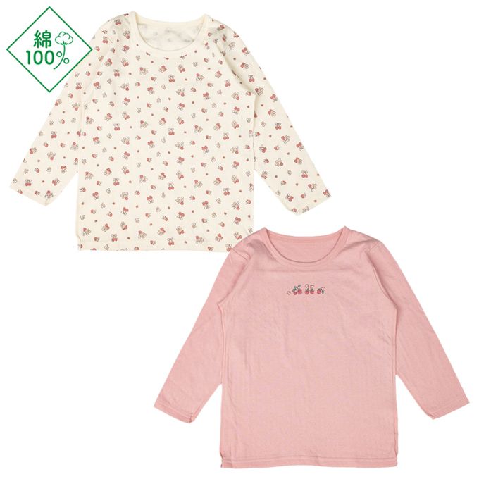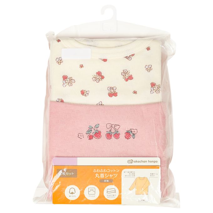 akachan honpo - 長袖圓領上衣2件組-蓬鬆棉 草莓-粉紅色