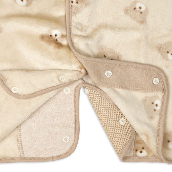 只要改變釦子的扣法,即可將防踢被變成短連身衣,能夠配合寶寶的成長來選擇穿著方式。