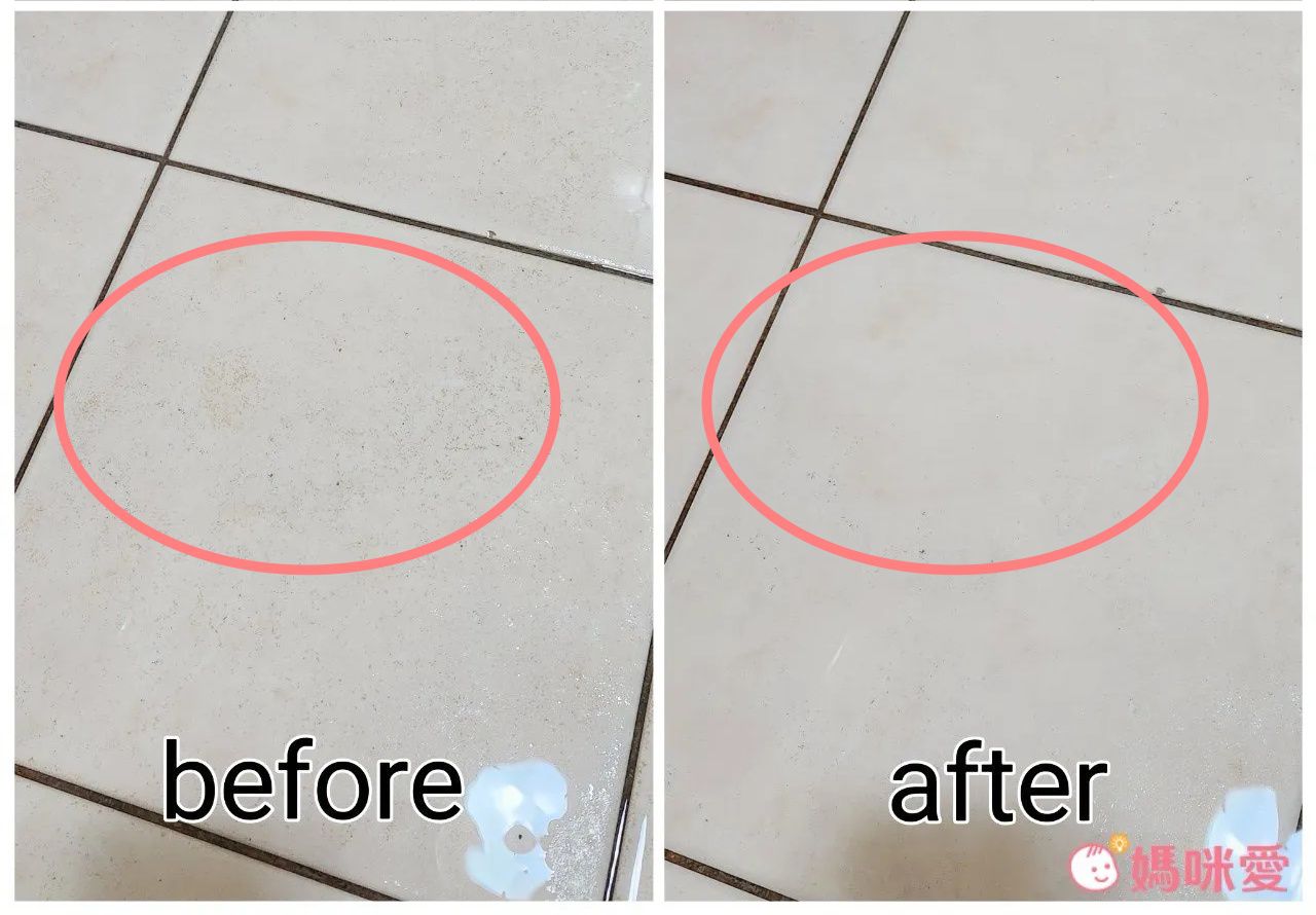 首先從我覺得相對簡單的地方開始👉地磚。沒有問題!一噴下去沒等多久,擦一擦就可以很乾淨~