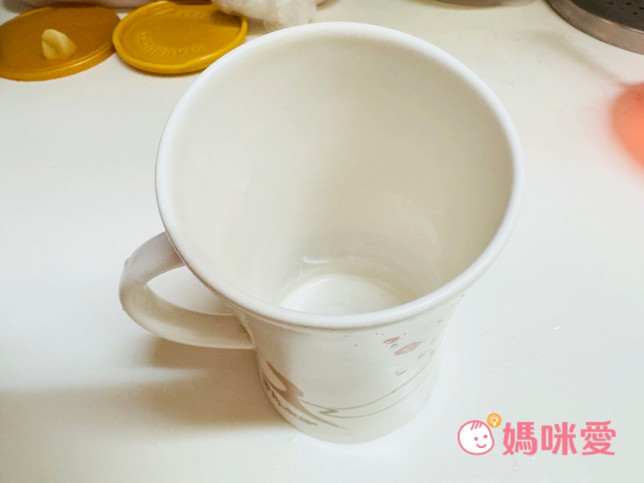 再來倒入接近沸騰的熱水,靜置1到2個小時。等水冷卻後,用清水將杯子徹底沖洗乾淨。如果污漬還是很頑固,可以將上述的清潔步驟再做一次!