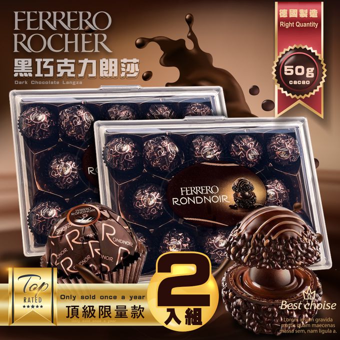 義大利FERRERO RONDNOIR - 『一年只賣一次』朗莎黑巧克力 14顆盒裝x2入 (黑金莎)-德國製
