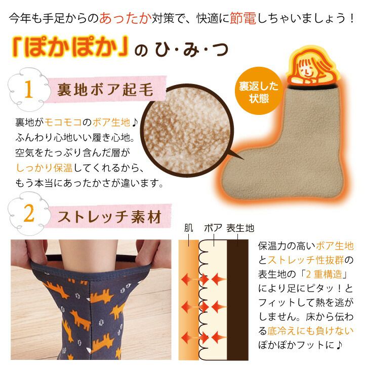 襪子的內裡是暖呼呼的厚刷毛,一穿上就能感受到柔軟溫暖的觸感!