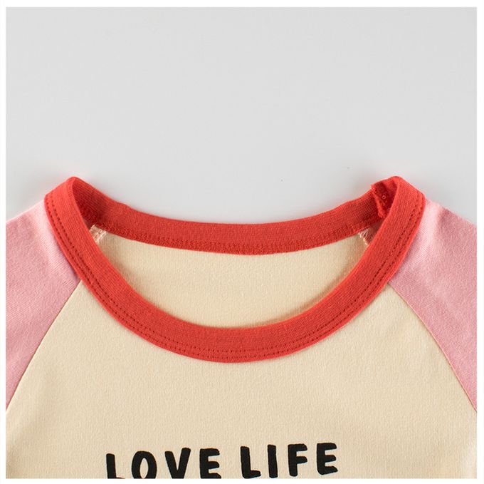 純棉長袖上衣-LOVE LIFE HAPPY-粉+杏