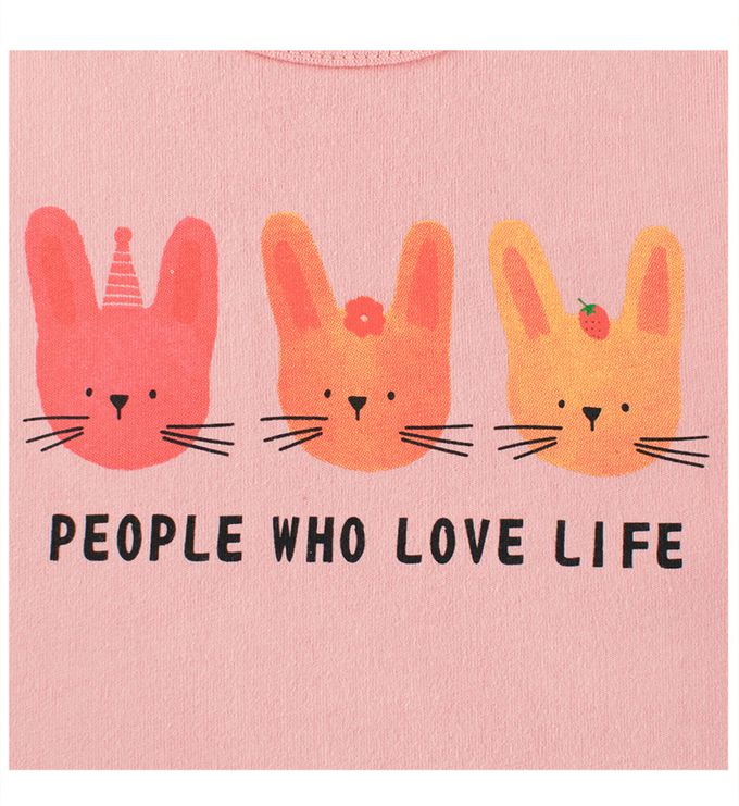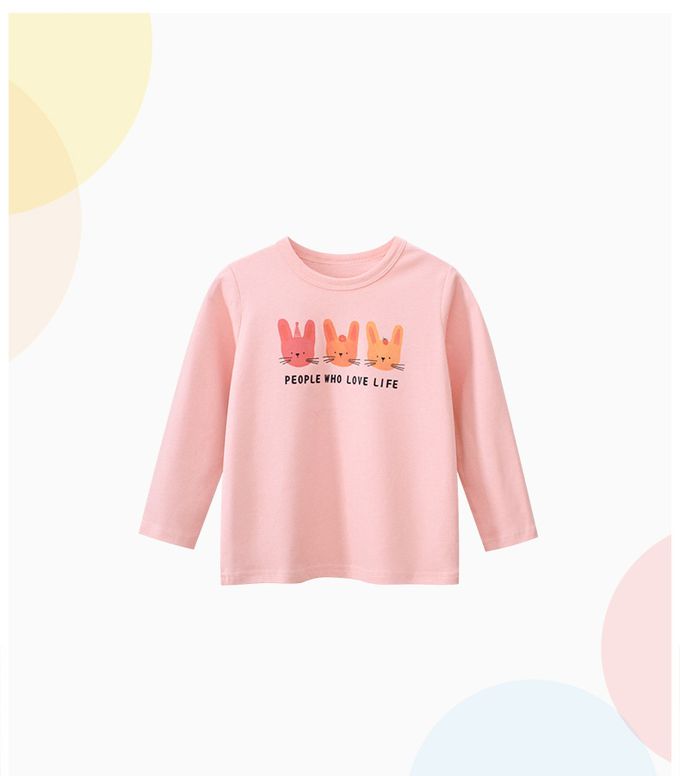 純棉長袖上衣-三隻小兔-粉色