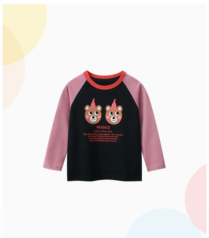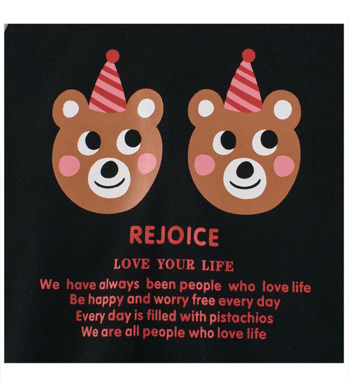 純棉長袖上衣-兩隻小熊-黑+粉