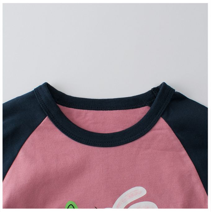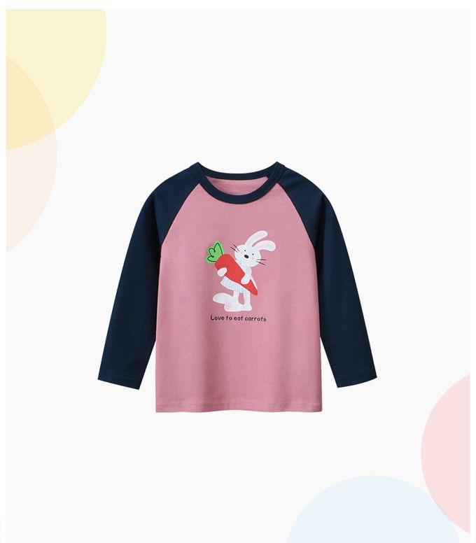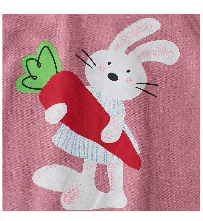 純棉長袖上衣-兔子抱著胡蘿蔔-粉+藏青