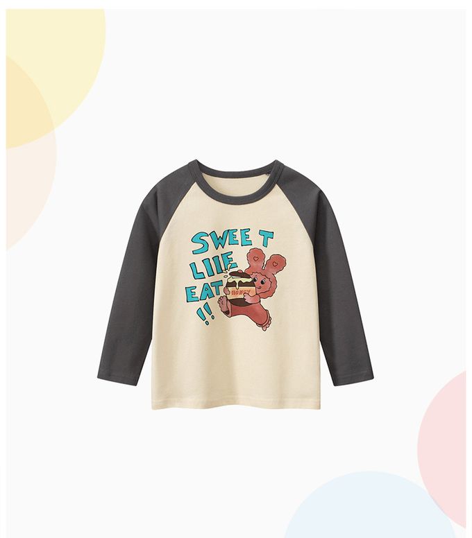 純棉長袖上衣-甜甜蜂蜜-杏+深灰