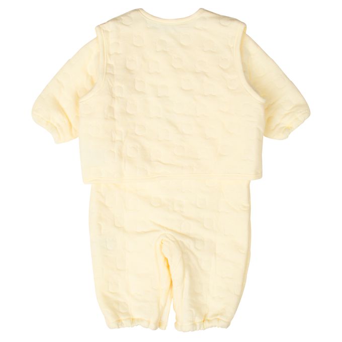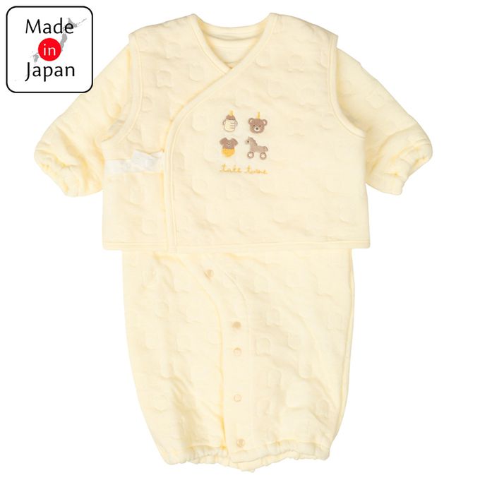 akachan honpo - 長袖保暖鋪棉連身衣附背心-淺卡其色 (50~60cm)-日本製