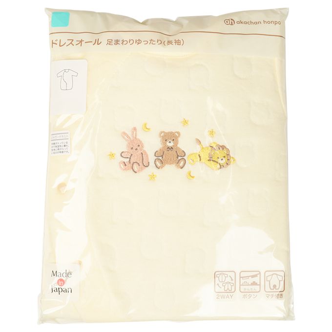 非常方便的2WAY型設計,以紅色鈕扣為記號,無論是誰都可以輕鬆地將其變換成連身衣或分腳連身衣穿。