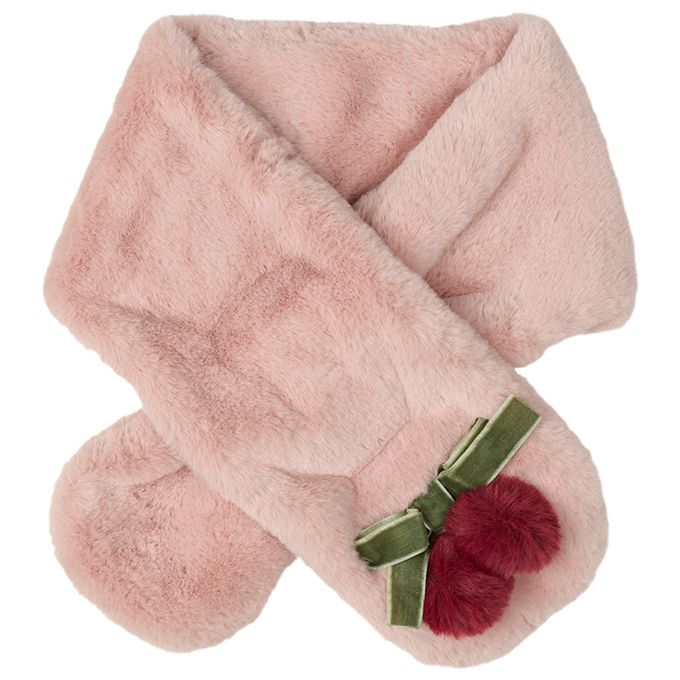仿毛圍巾-櫻桃-粉紅色 (寬:約11cm、全長:約78cm)