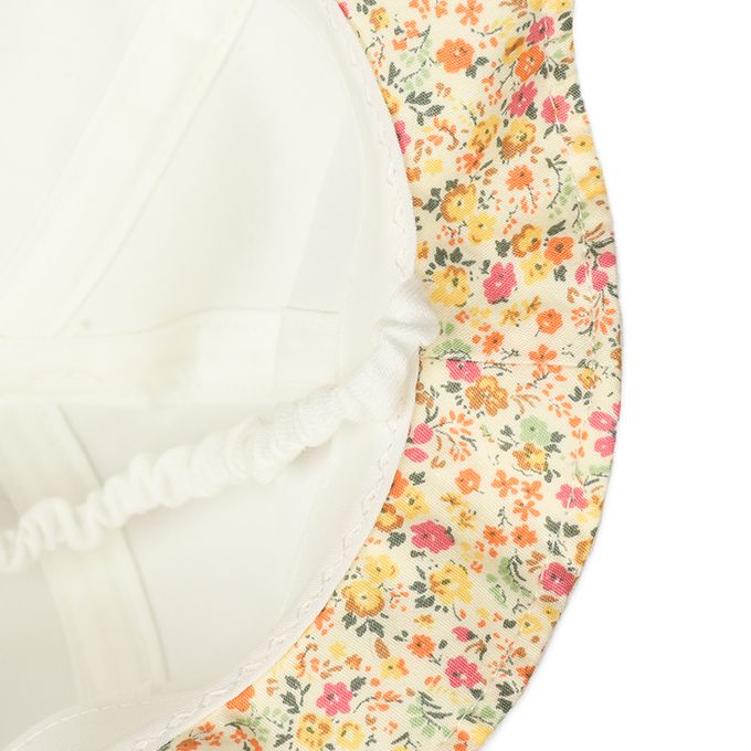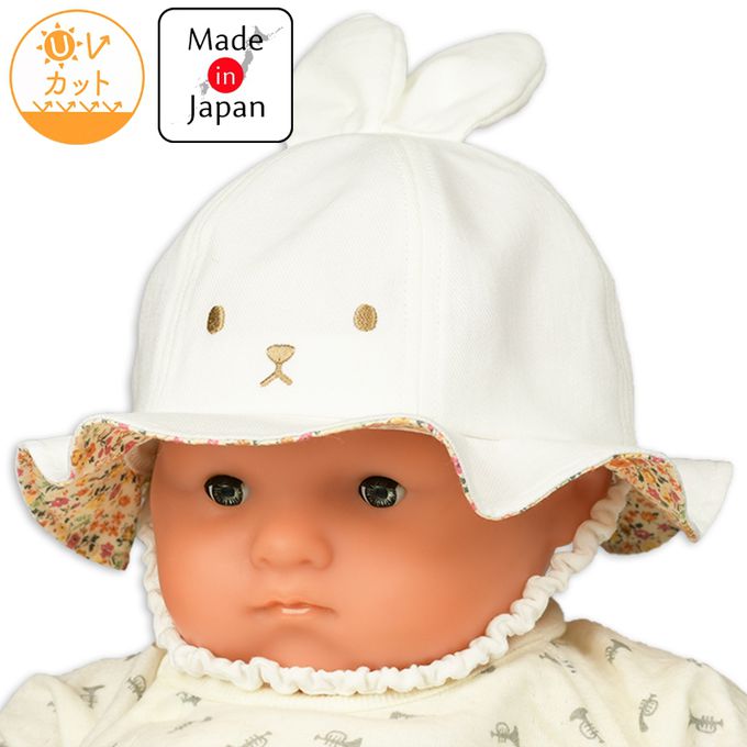 嬰幼兒寬簷帽-兔耳 小花-米白色-日本製