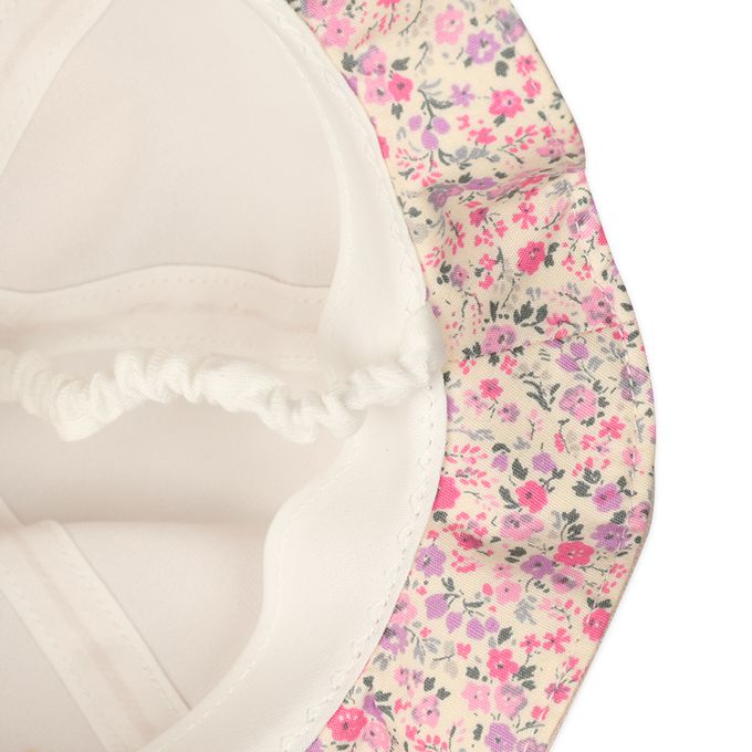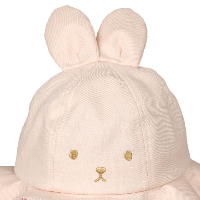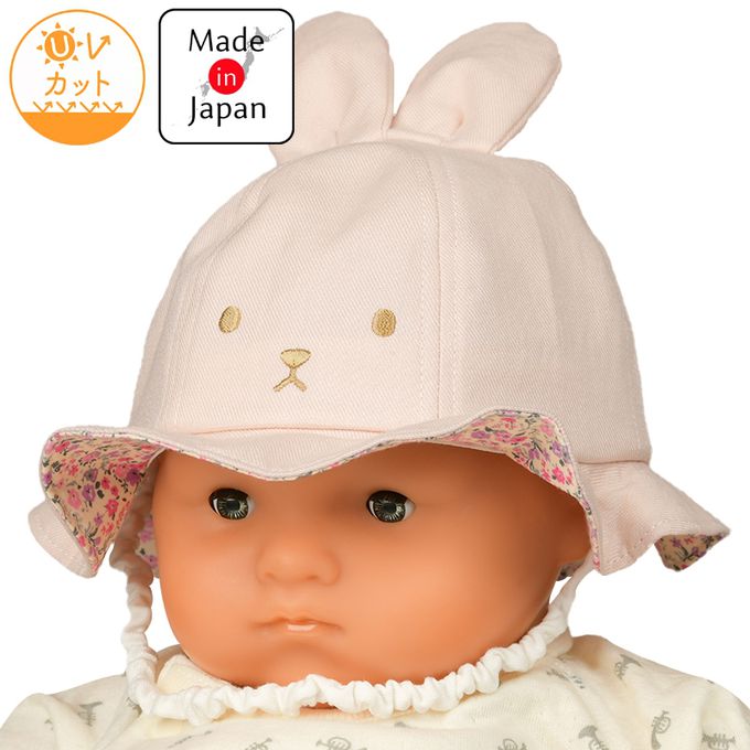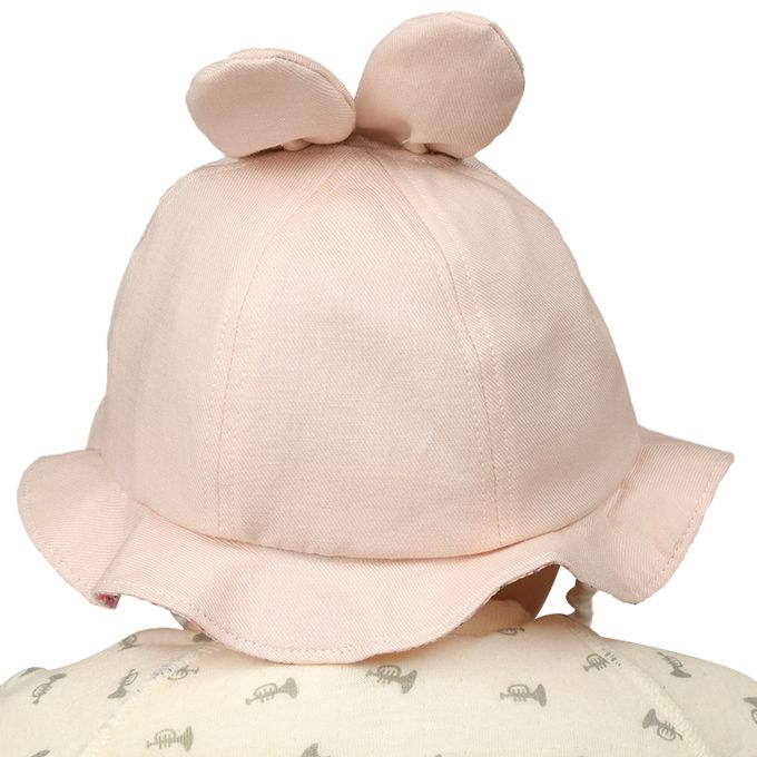 嬰幼兒寬簷帽-兔耳 小花-粉紅色-日本製