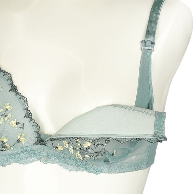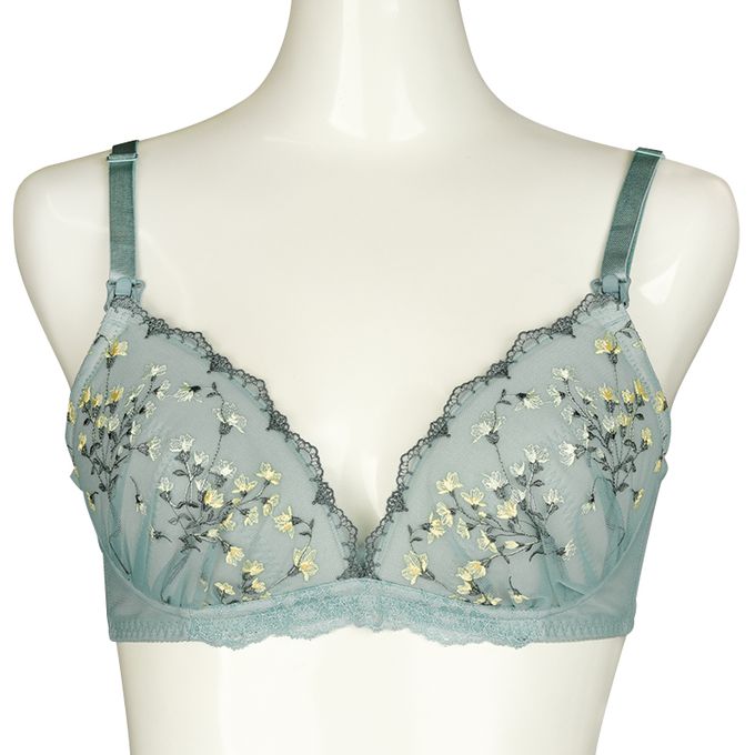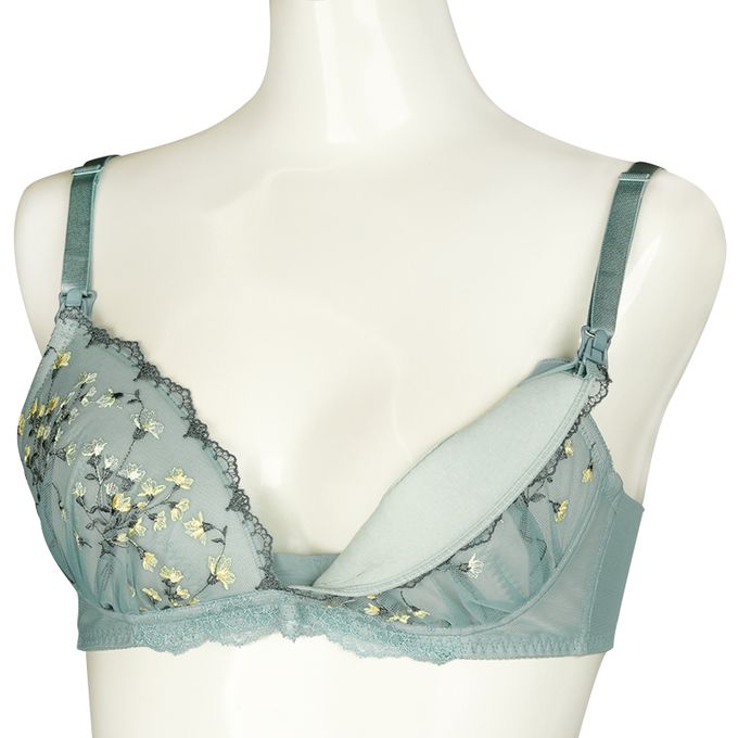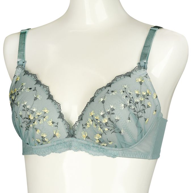 akachan honpo - 美型無鋼圈胸罩-小花 有哺乳功能-綠色