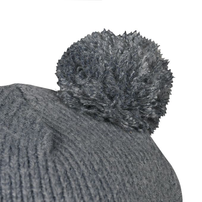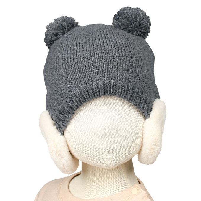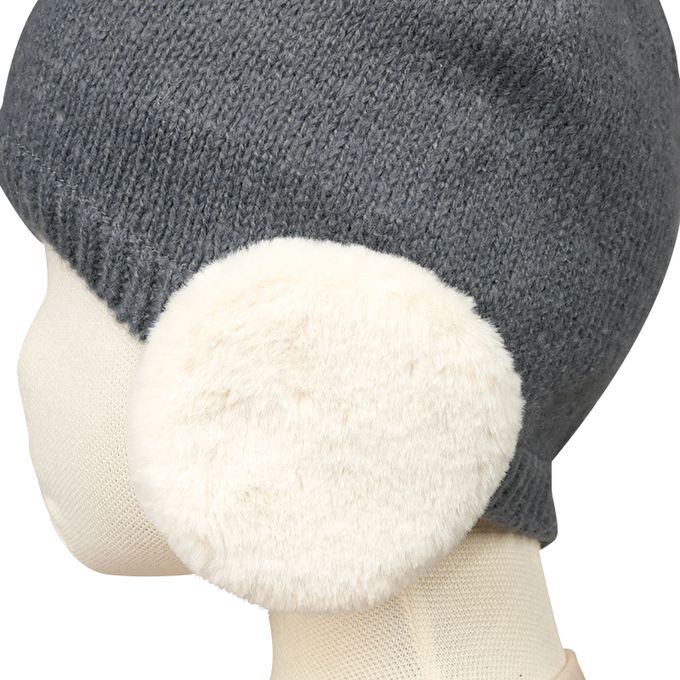灰色調的針織帽搭配米白色耳罩的非常時尚