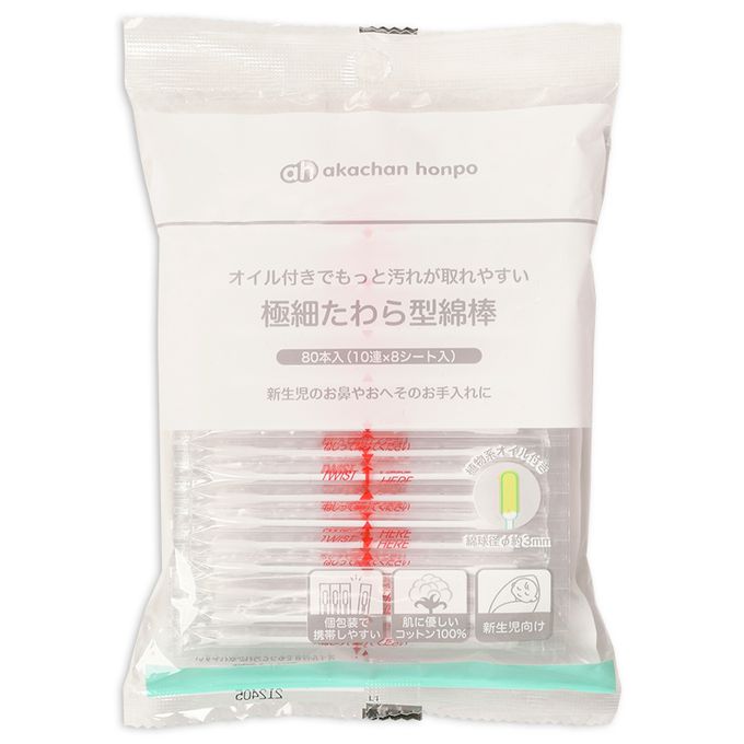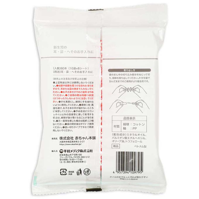 akachan honpo - 極細橢圓狀帶油棉花棒 能更輕鬆去除污垢