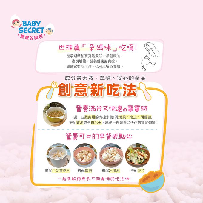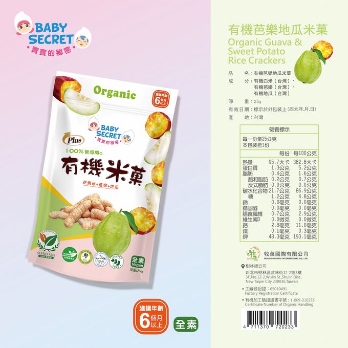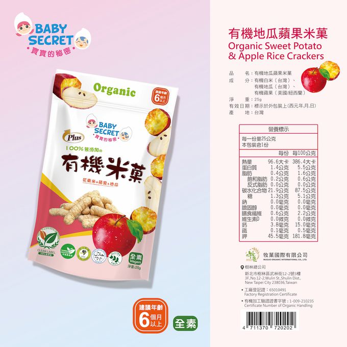 成分:芭樂:有機白米(台灣)、有機芭樂(台灣)丶有機地瓜(台灣) 香蕉:有機白米(台灣)、有機地瓜(台灣)丶有機香蕉(台灣) 蘋果:有機白米(台灣)、有機地瓜(台灣)丶有機蘋果(美國/紐西蘭)