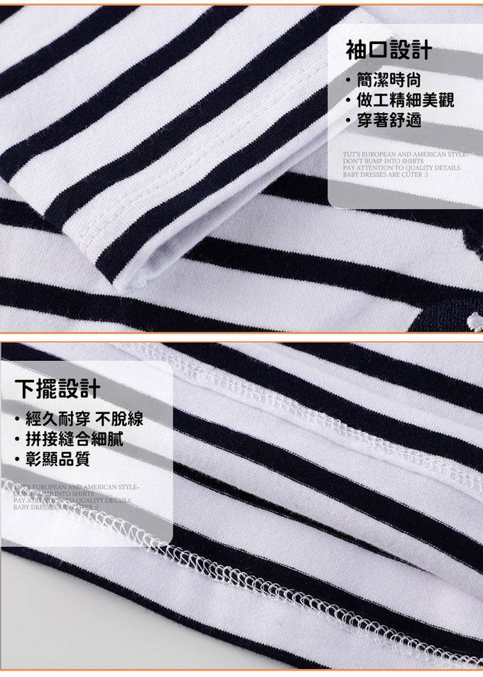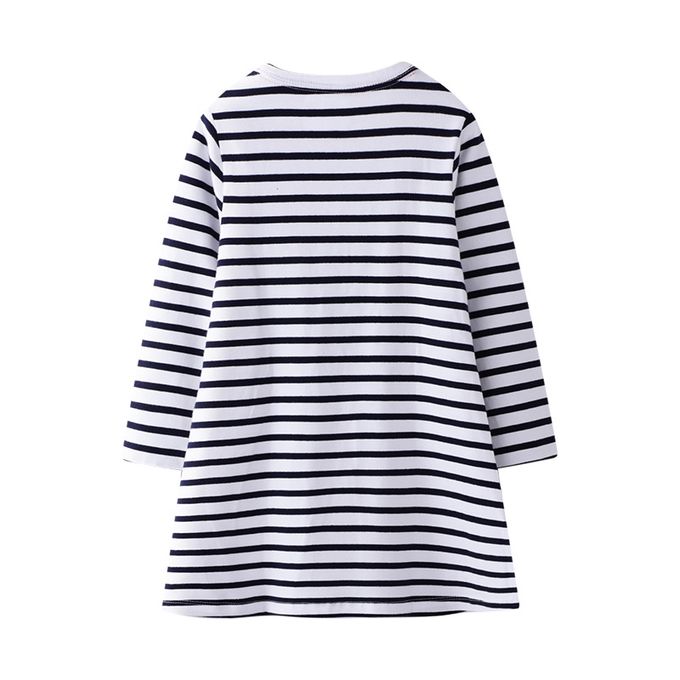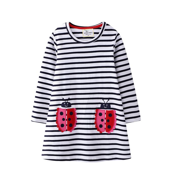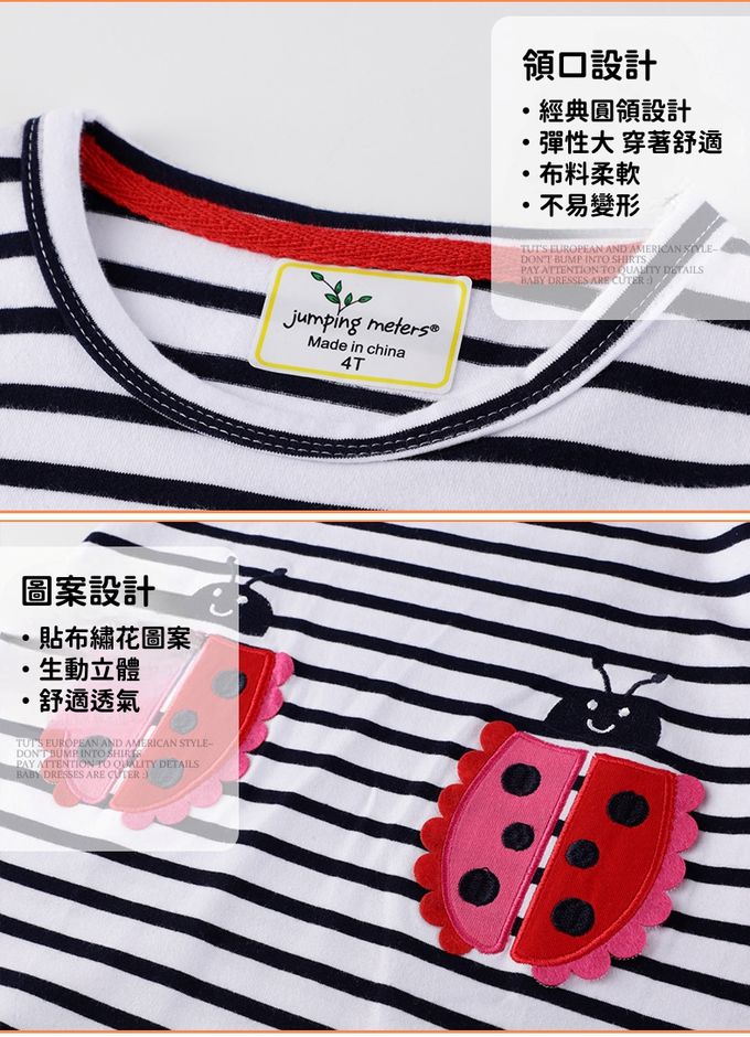 棉質圓領長袖連身洋裝-瓢蟲貼布繡-黑白條紋