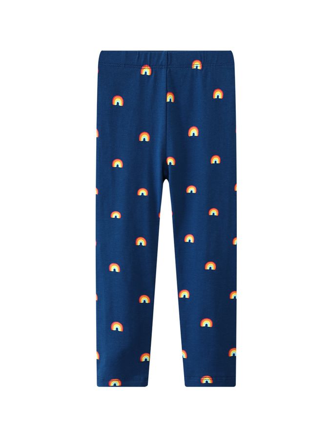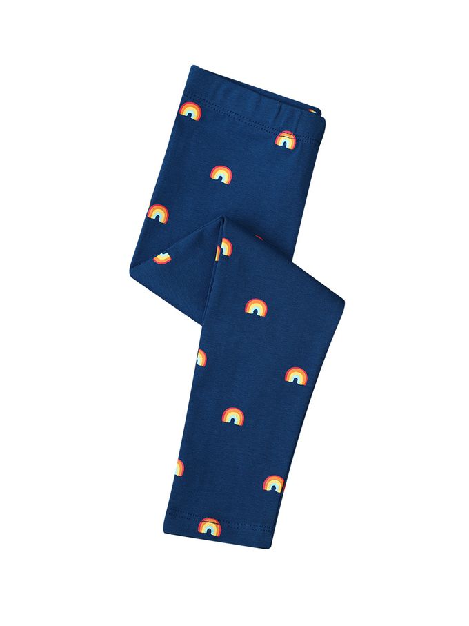 Jumping meters - 休閒腰鬆緊內搭褲-獨角獸彩虹-深藍色